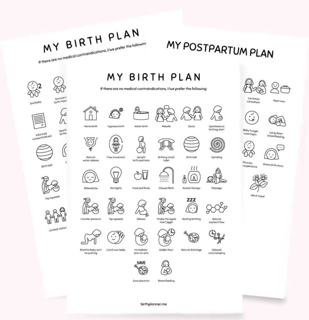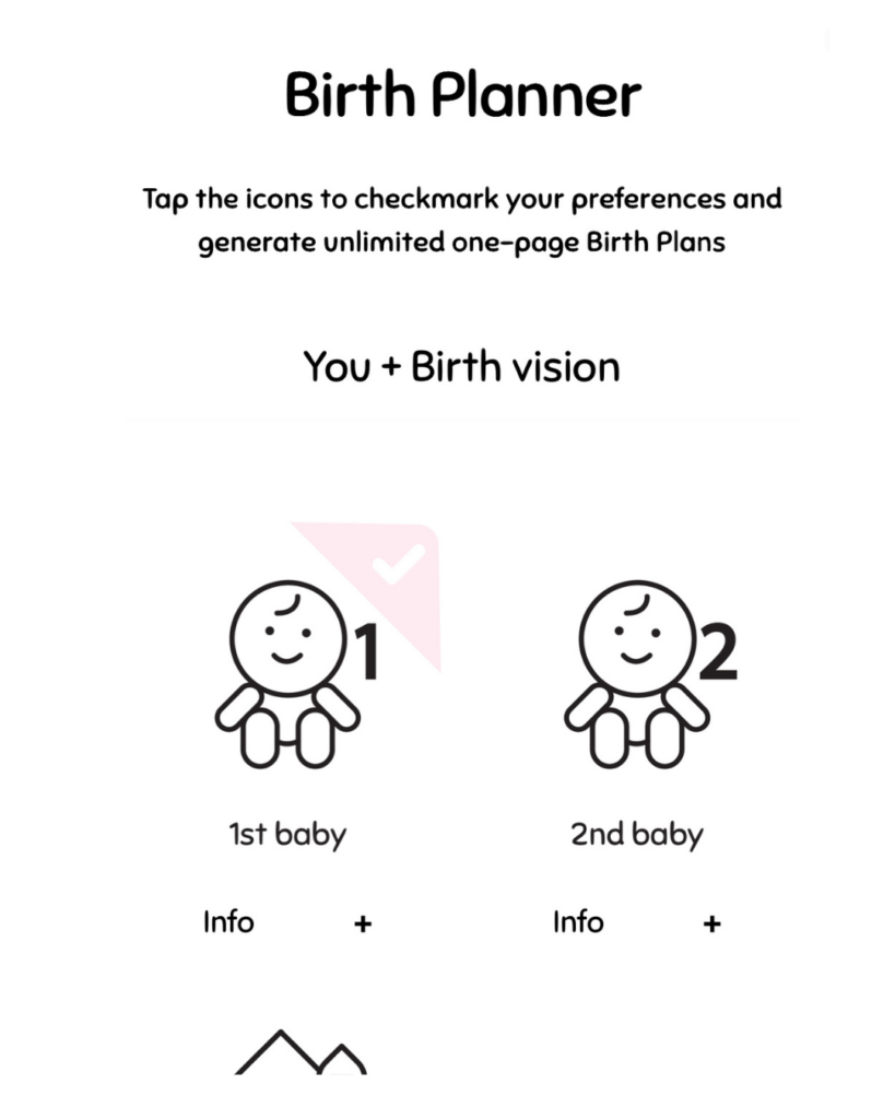 It’s a visual birth plan generator that lets you create personalized, easy-to-read, iconic plans. Instead of long paragraphs, you select icons that clearly show your preferences at a glance.